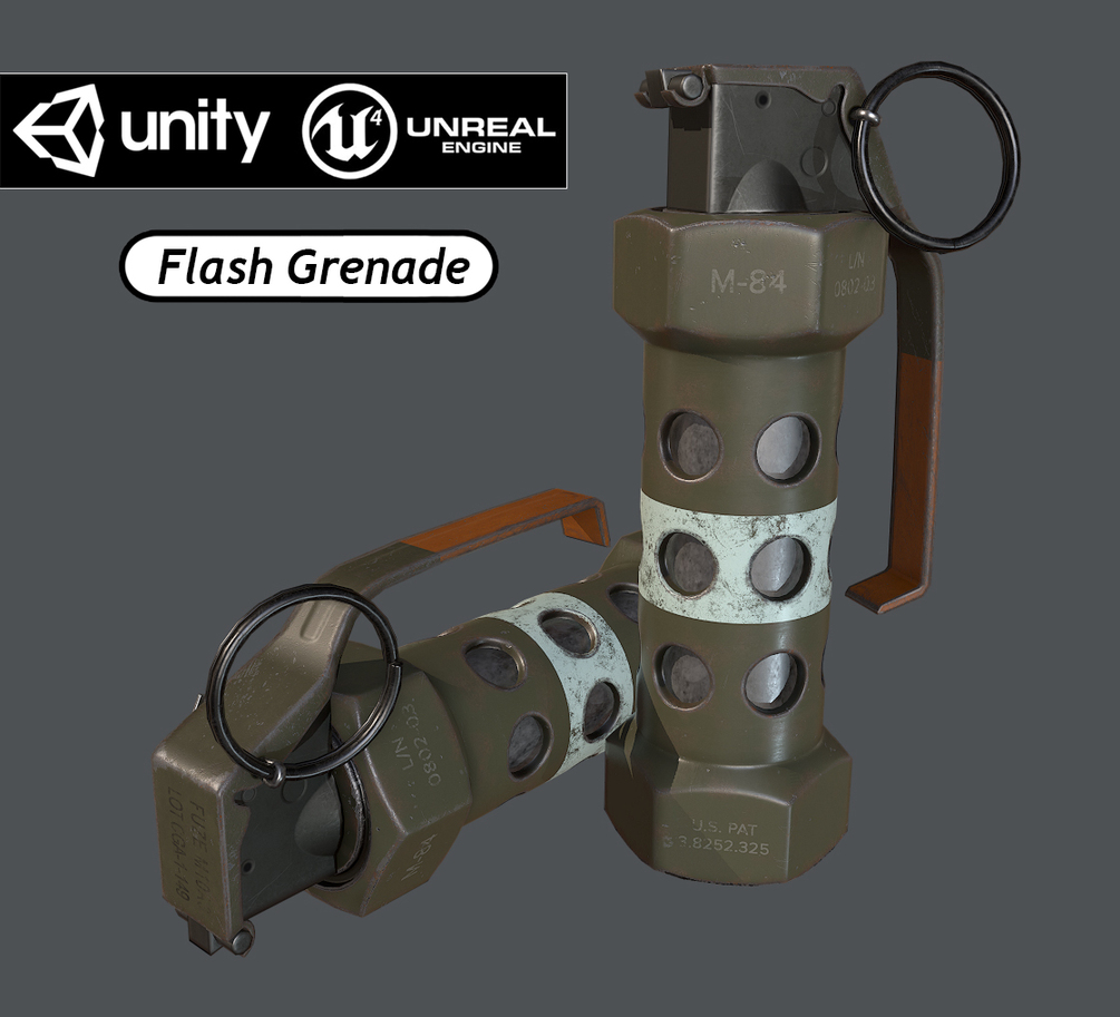 This pack contains 1 AAA quality game ready mesh and texture set for your FPS project. This Flash Grenade model's quality and polycount are equal to current FPS game standards.